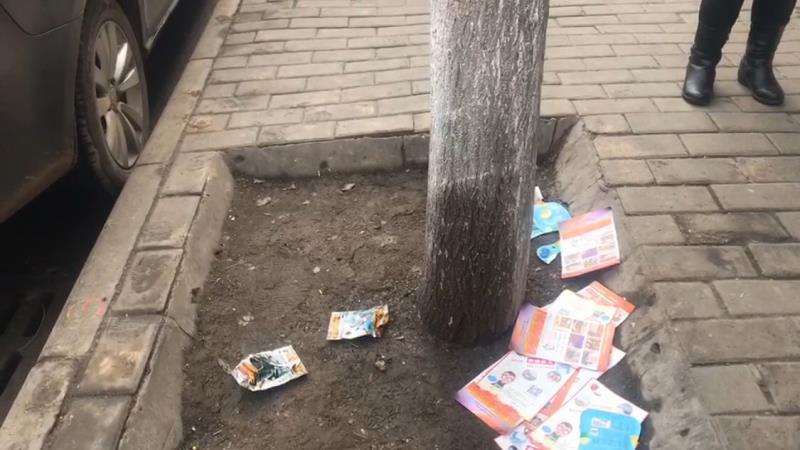 在青年南街记者发现每隔20米就能发现一根烟头,绿化带里、树池里随处可见烟头的踪迹,一圈走下来,记者发现了50多跟烟头,除了烟头,地上还随意扔着垃圾,残羹剩饭泼洒在绿化带里,路两边商户占道经营,直接将摊位摆放在人行道上,下水道也形态各异,有的管道离地20米,有的管道则伸出屋檐2厘米制造出人工瀑布,路过行人无不避让通过,这些管道都把污水直接排在路面上,导致路面到处是污水,污水肆意流淌。