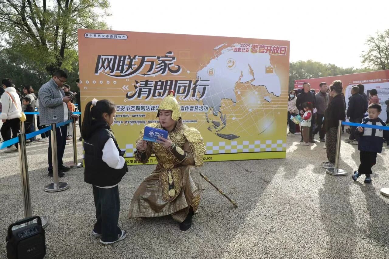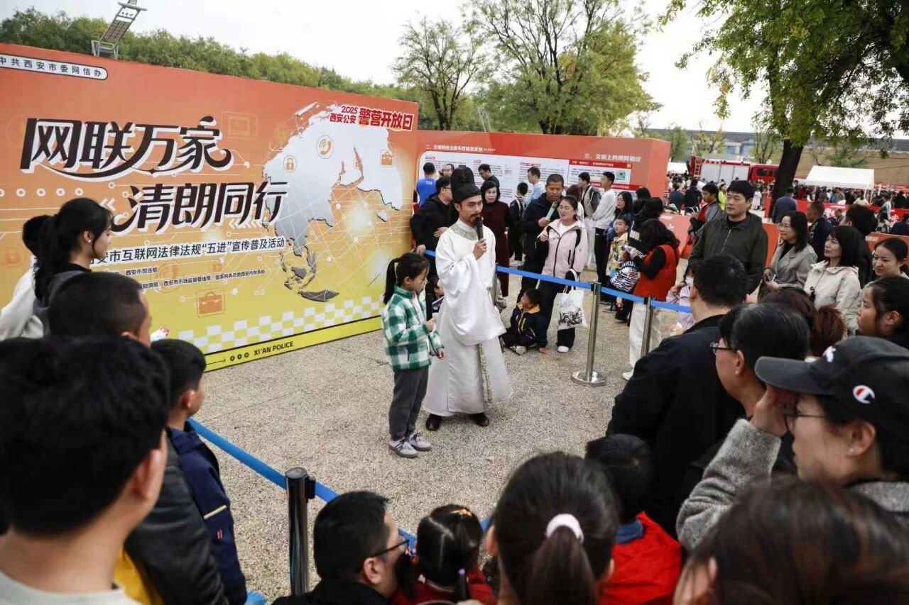警民联动,打造普法宣传“零距离”。11月1日,创新推动“警-网联合”模式落地见效,将网络普法活动以重要组成模块方式嵌入市公安局第三届警营开放日联动开办,在大明宫广场设置普法墙、游戏互动、表演互动、合影打卡四大展区。邀请西安城墙“金吾卫”、大唐不夜城“李白”等本土IP现场开展“引古通今”宣讲和有奖互动问答,群众通过“清朗网络我有一套”“打破谣言飞盘挑战”等游戏深入理解法律知识,实现了“娱乐式普法”与“警示性教育”的多重收效。15家中央和省、市知名媒体全网同步现场直播,实现了线上线下同频共振,受众群体剧增的绝佳效果。