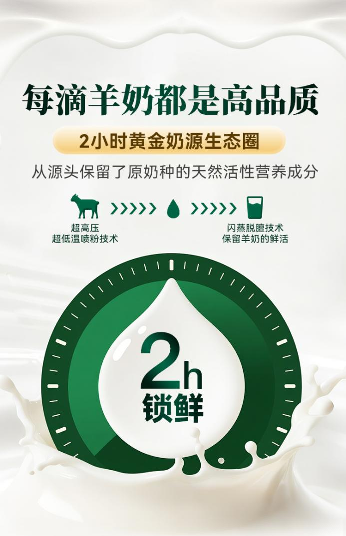 进入工厂后,鲜奶历经50秒瞬时杀菌、高压低温喷粉等工艺,在杀灭有害细菌的同时,最大限度保留天然营养活性。整个加工过程全程数字化监控,生产数据实时上传云端,确保每一个环节可追溯。从挤奶到成品出厂,全程不超过24小时,最终送达消费者手中的,是带着牧场鲜气、无任何添加剂的真羊奶。这种“不省步骤、不图省事”的坚持,正是对假奶乱象最有力的反击。