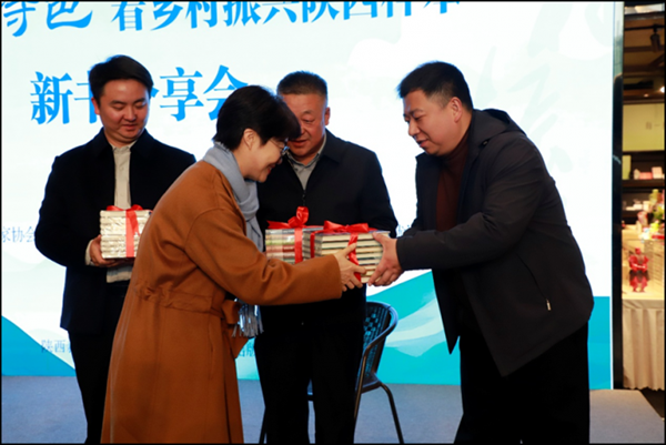 活动尾声,陕西人民出版社向西安市蓝田县峪口村、宝鸡市凤翔区六营村、咸阳市礼泉县袁家村代表赠书,为本次分享会画上圆满句号。