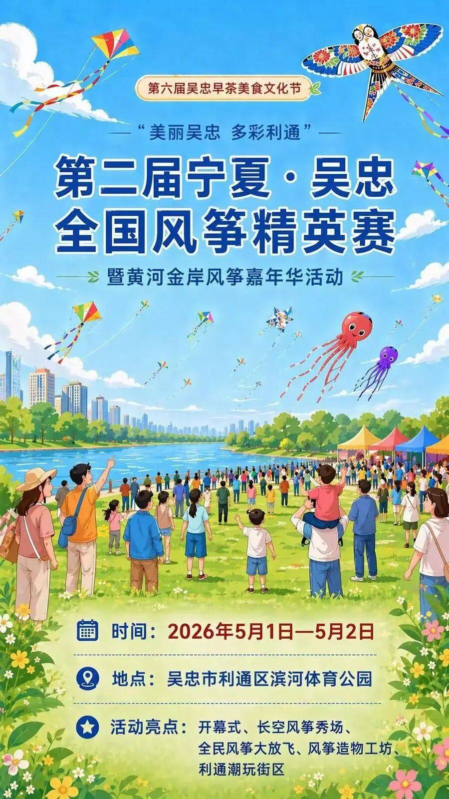 “五一”期间,黄河岸边,千人八段锦展演将展现中华传统养生文化的磅礴气势。“群众点歌我来唱”活动,以嘹亮歌声凝聚奋进力量。美食展销配合国风巡游、“早茶仙子”互动,国潮味十足。体育迷们同样不容错过,5月1日至2日,第二届宁夏·吴忠全国风筝精英赛设置传统风筝、运动风筝等竞赛项目,并伴有夜光风筝表演特色活动,让游客大饱眼福;全区篮球邀请赛、全市足球邀请赛也将同期燃情开赛。